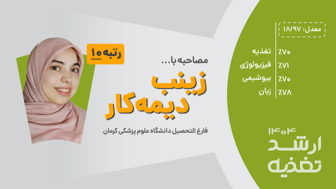 برای سه درس تغذیه، بیوشیمی و فیزیولوژی از فیلم‌ها و کتاب‌های دکتر محمدی استفاده کردم. برای درس زبان یه مدت کتاب دکتر لزگی رو از کتابخانه دانشکده امانت گرفتم اما فرصت نکردم کامل مطالعه کنم در نهایت نزدیک کنکور روی سوالات سال‌های قبل تمرکز کردم.
