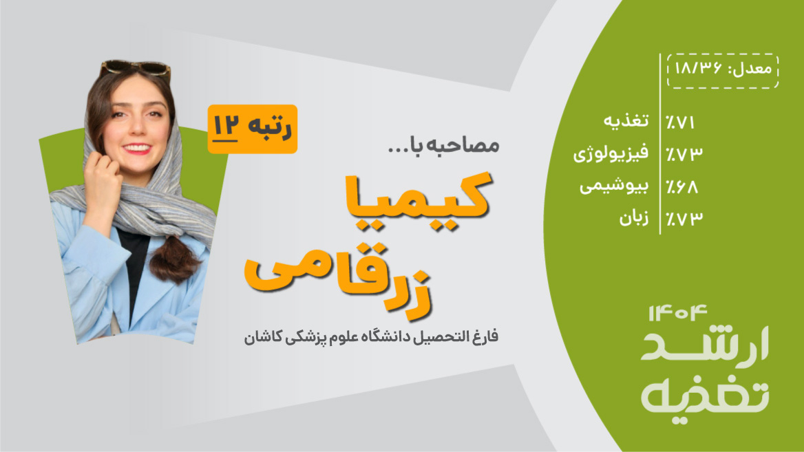 در سال ۱۴۰۴ از دانشگاه علوم پزشکی کاشان فارغ التحصیل شدم. معدلم تا آخر ترم هفت، ۱۸.۳۶ بود.