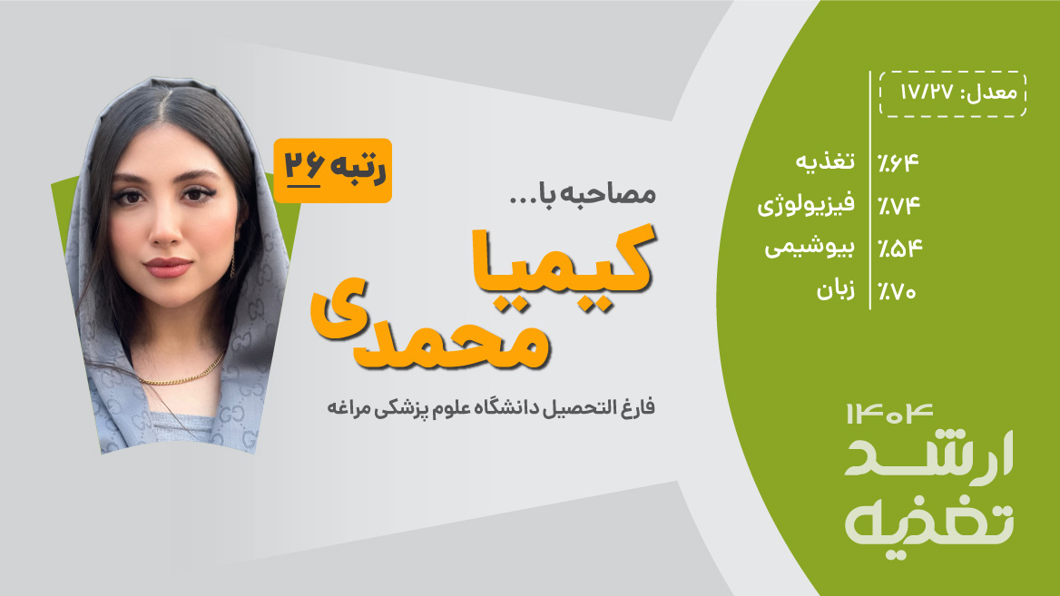حتی لحظه‌ای ناامید نشید، سعی کنید همیشه به آزمون‌ها برسید و بهترین خودتون و ارائه کنید اما بخصوص در اوایل سال خیلی به خاطر نتیجه به خودتون سخت نگیرید و فقط سعی کنید خودتون رو حتما به برنامه برسونید و بدونید فقط کنکور آزمون اصلی شماست و خودتون رو با هیچکسی مقایسه نکنید. به تک تک توصیه‌های دکتر محمدی عمل کنید و با همه وجود بهشون اعتماد داشته باشید.